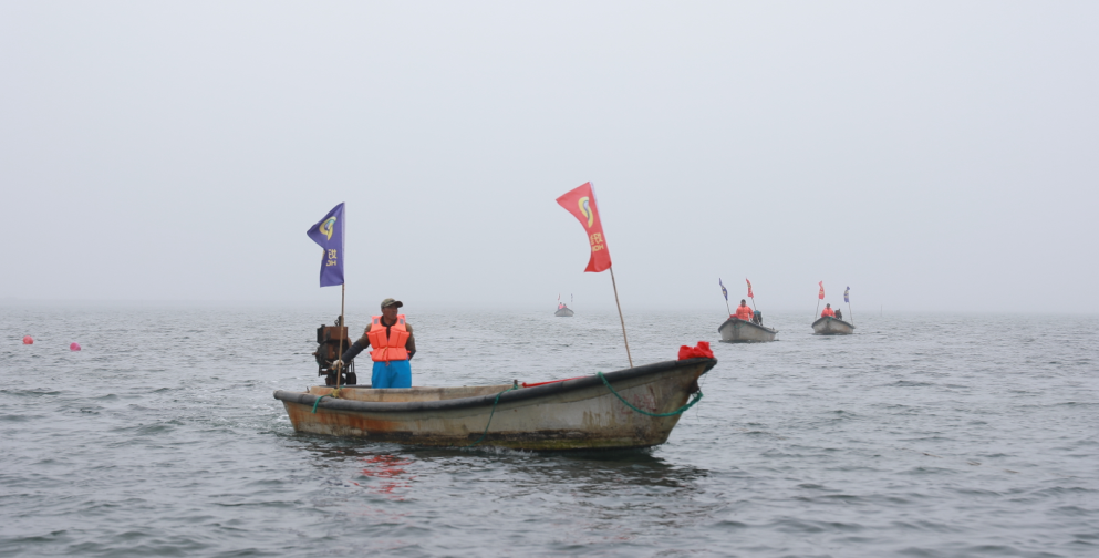 儀式過后,海猛子們紛紛登上漁船,開足馬力,一起向蔚藍的大海前進,開啟海參滿倉的2023春季海參采捕之旅。